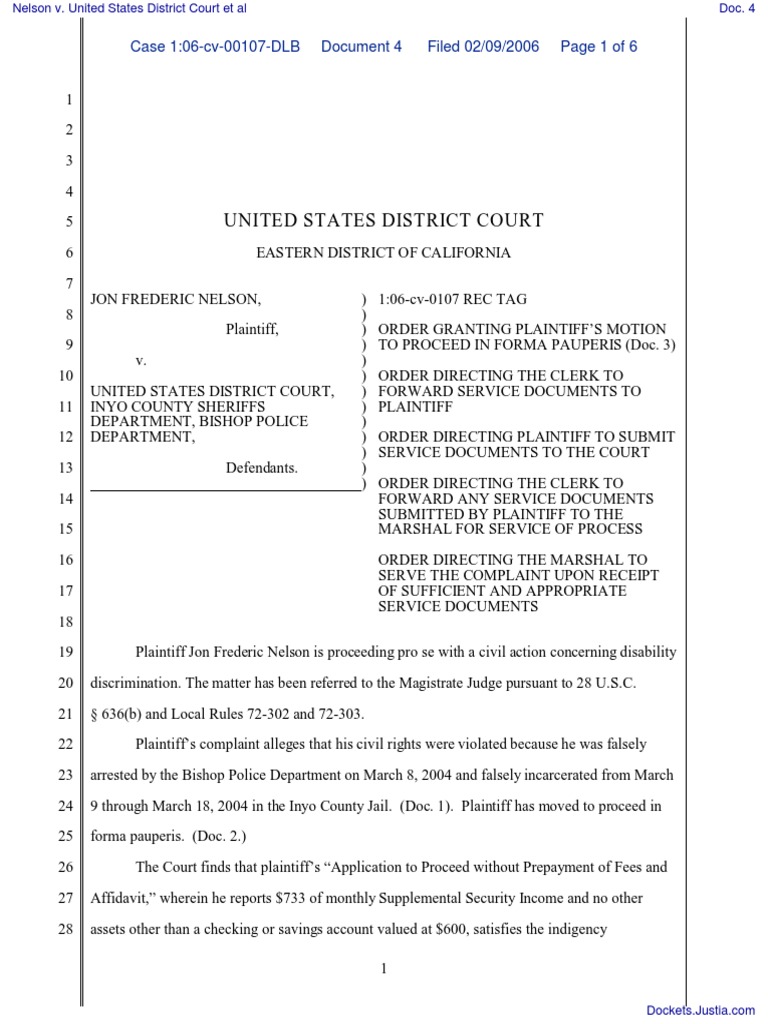 United States District Court Case 106cv00107DLB Document 4 Filed